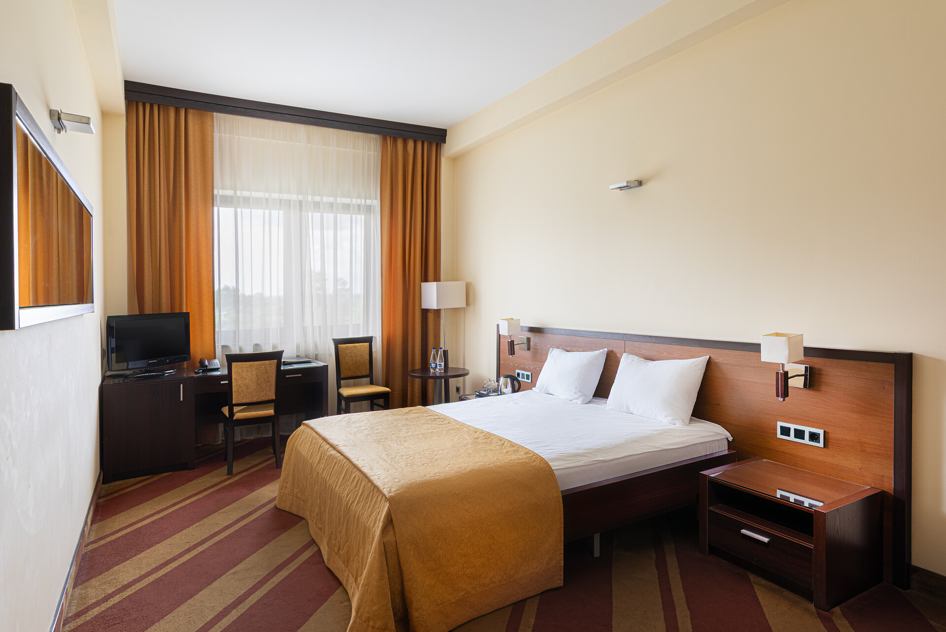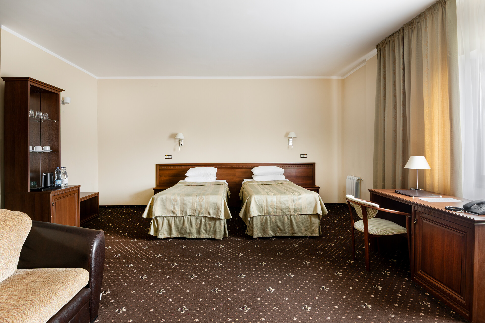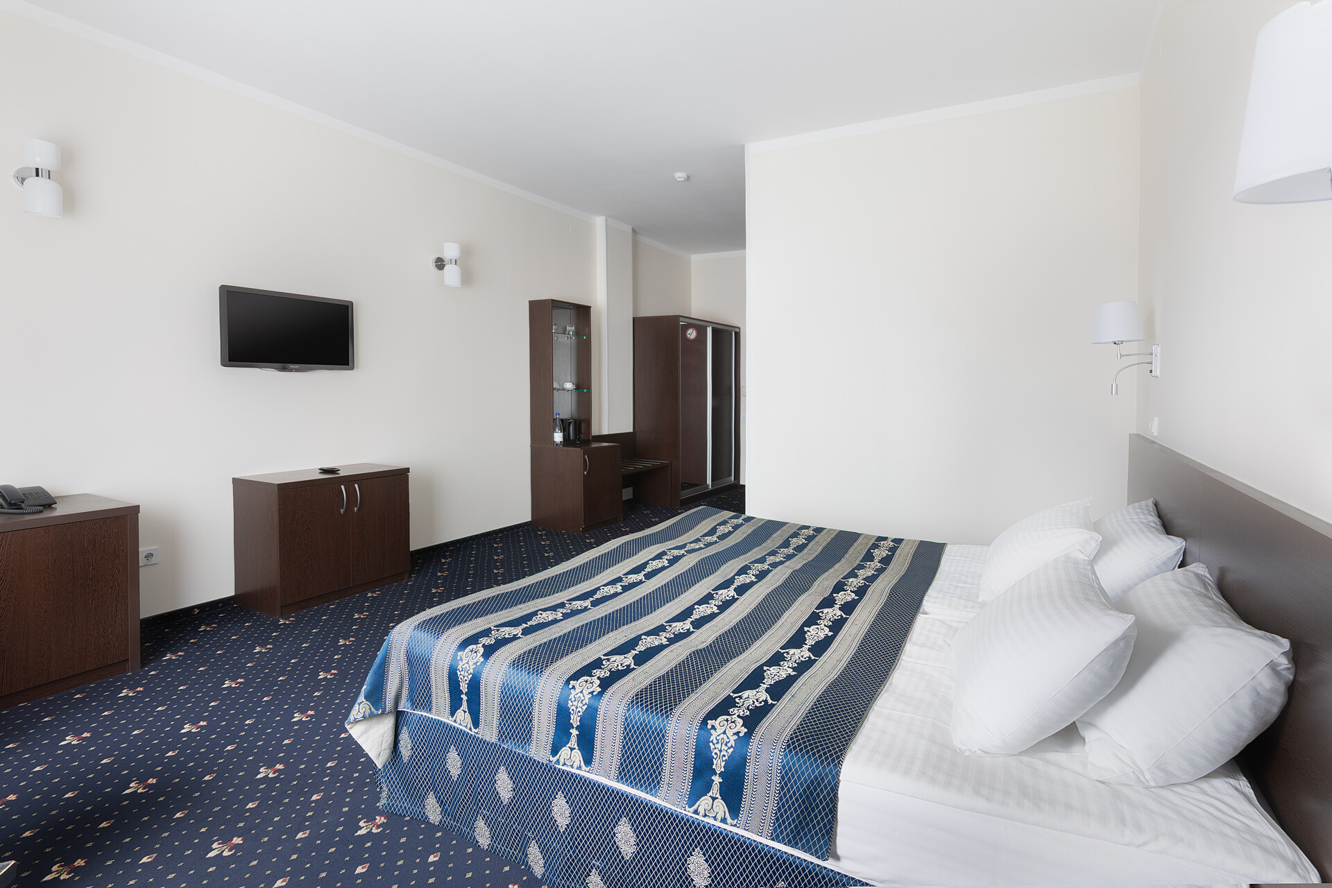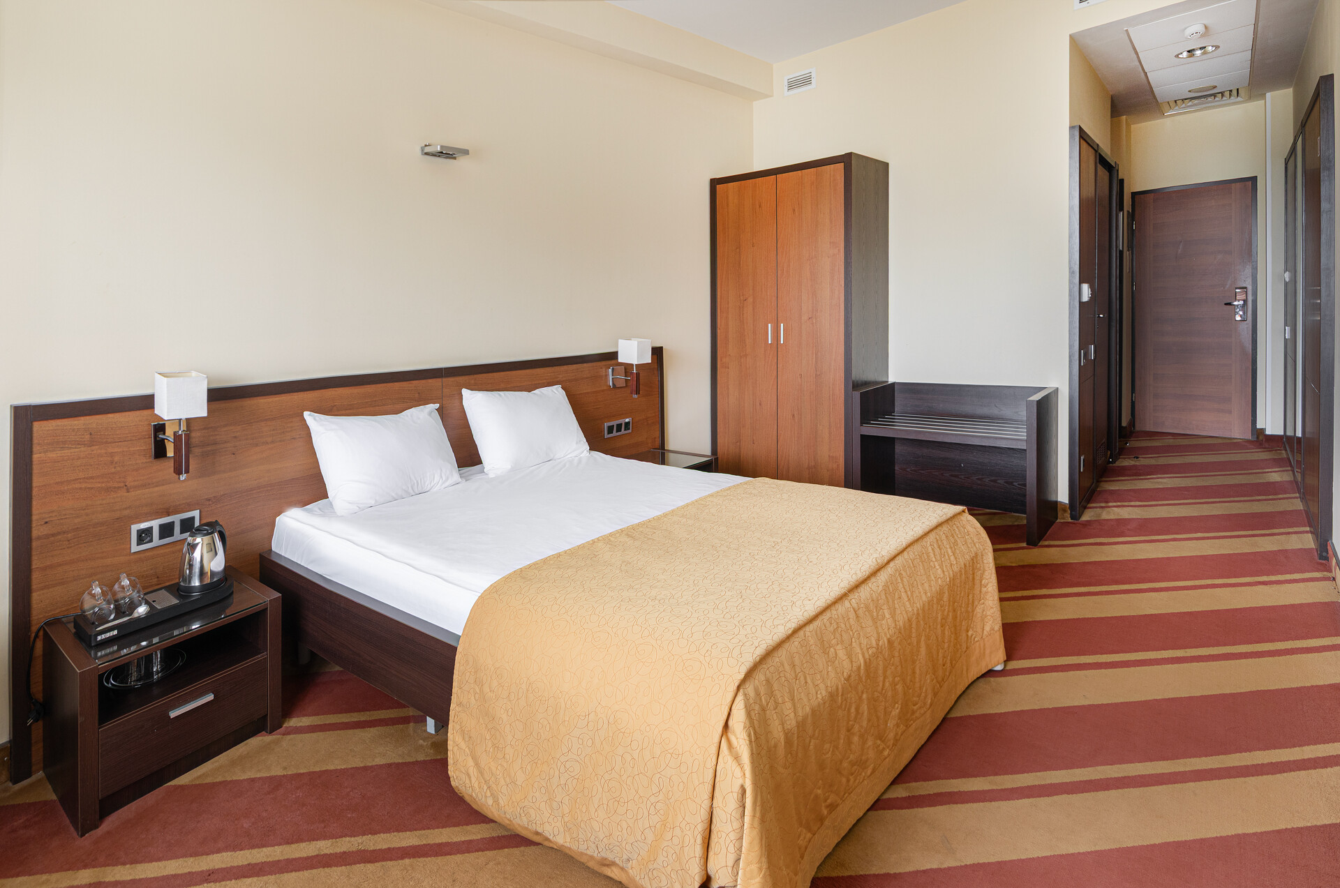 В номере: ванна, туалет, умывальник / 2-спальная кровать, Wi-Fi, кондиционер, мини-холодильник, сейф, тв, телефон, фен