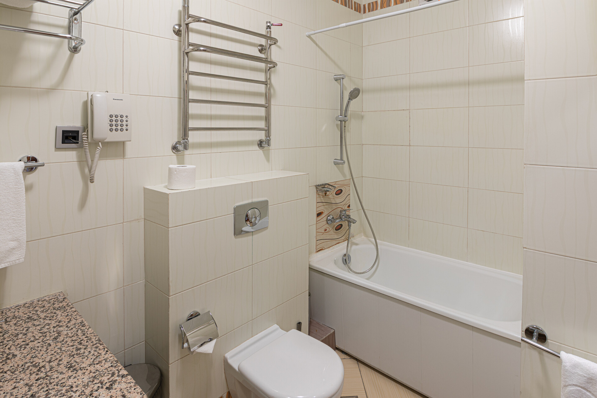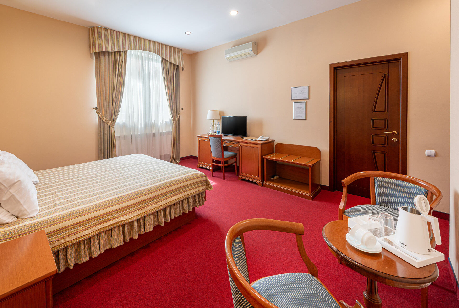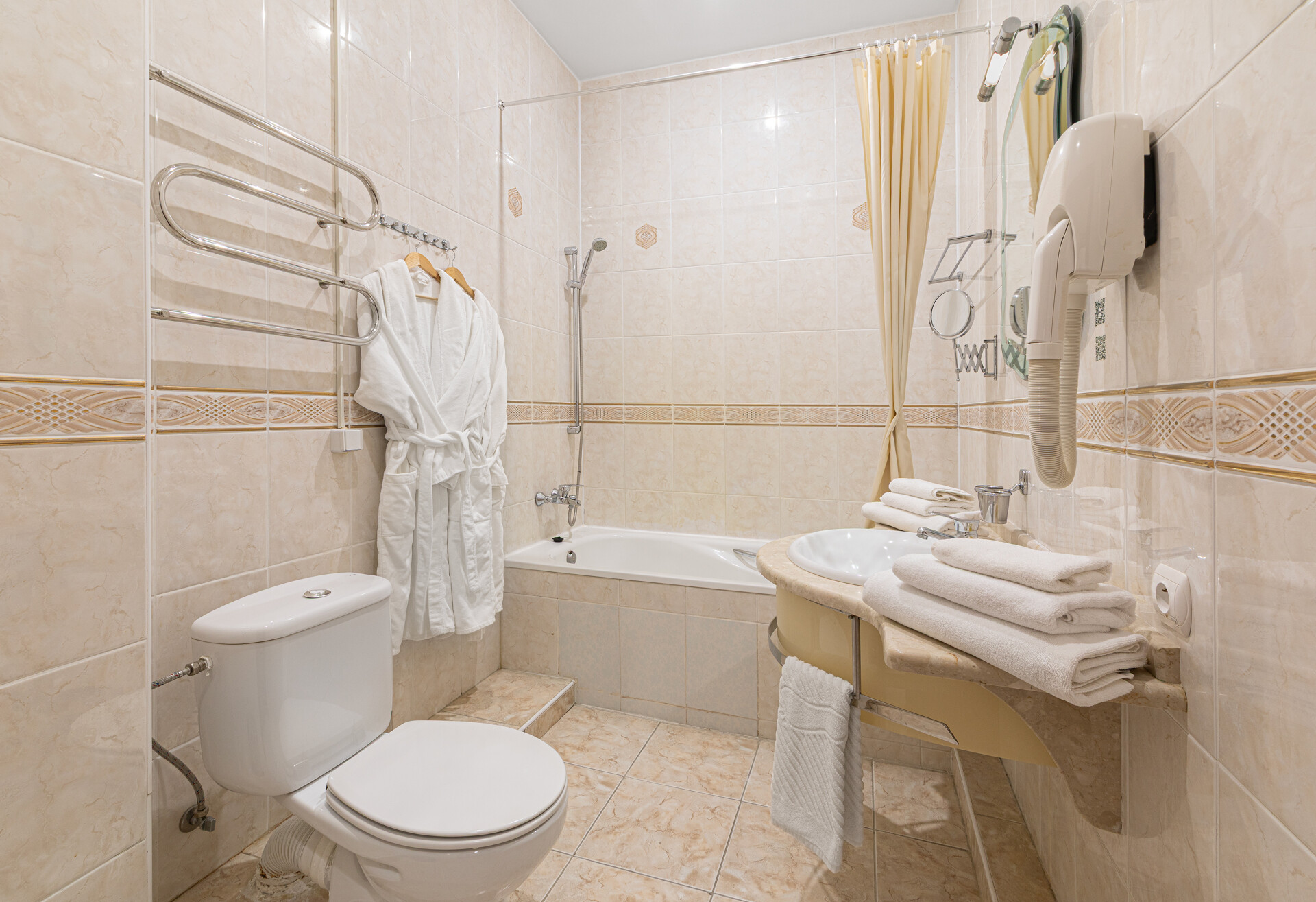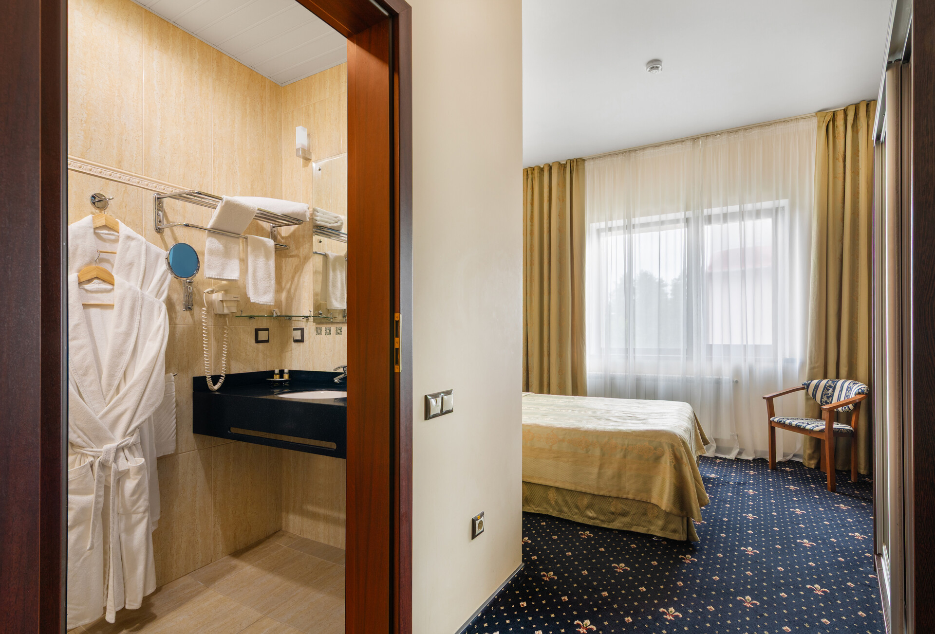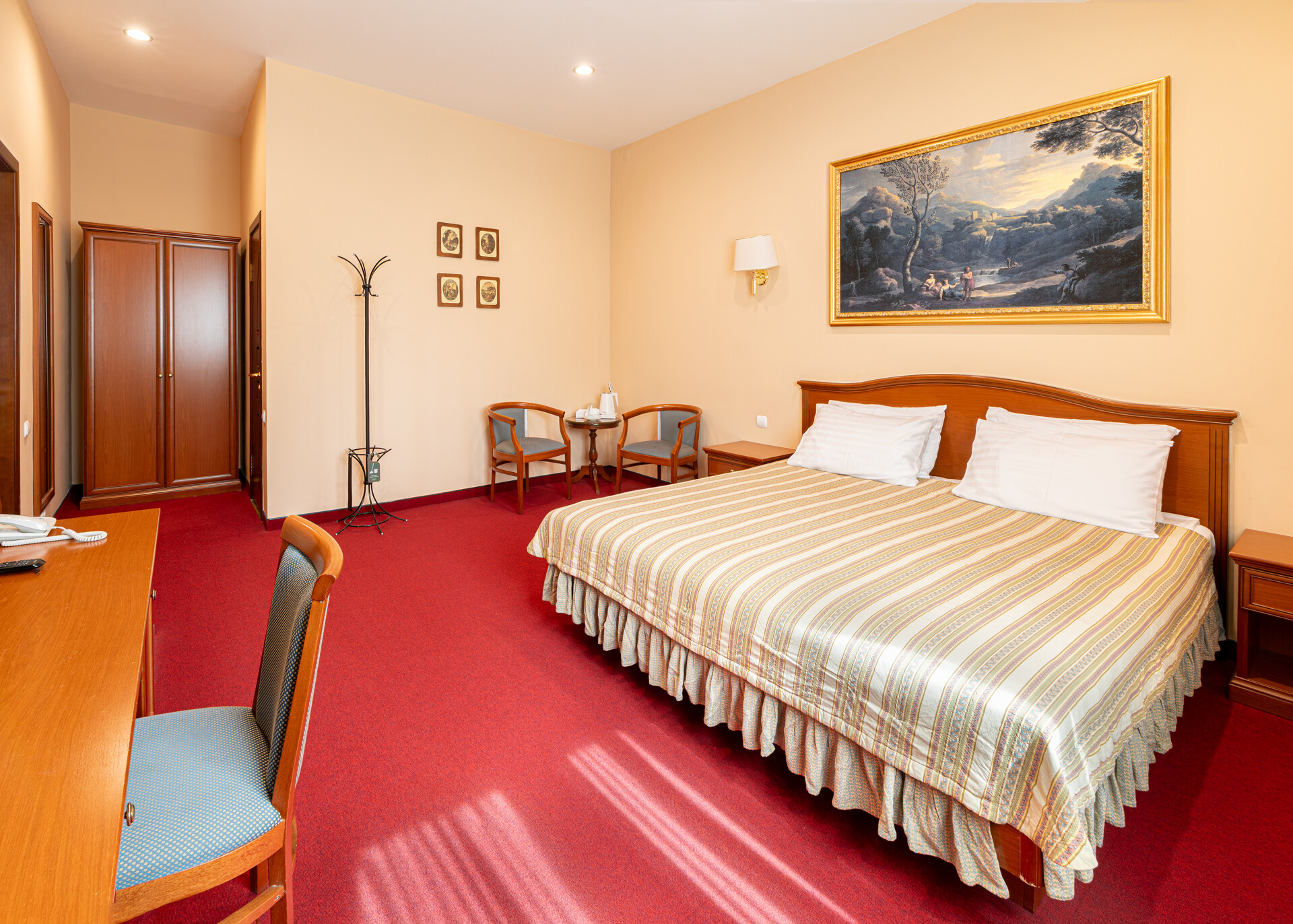 В номере: биде, ванна, туалет, умывальник / 2-спальная кровать, Wi-Fi, кондиционер, мини-холодильник, сейф, тв, телефон, фен