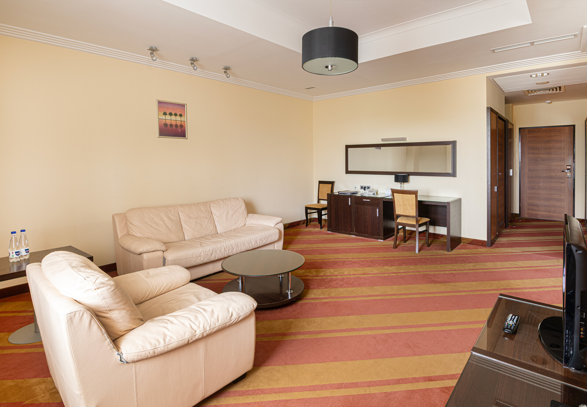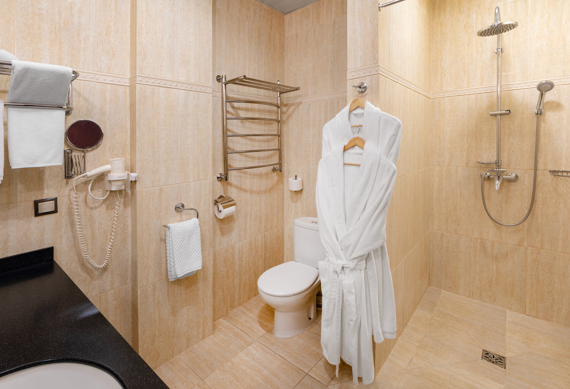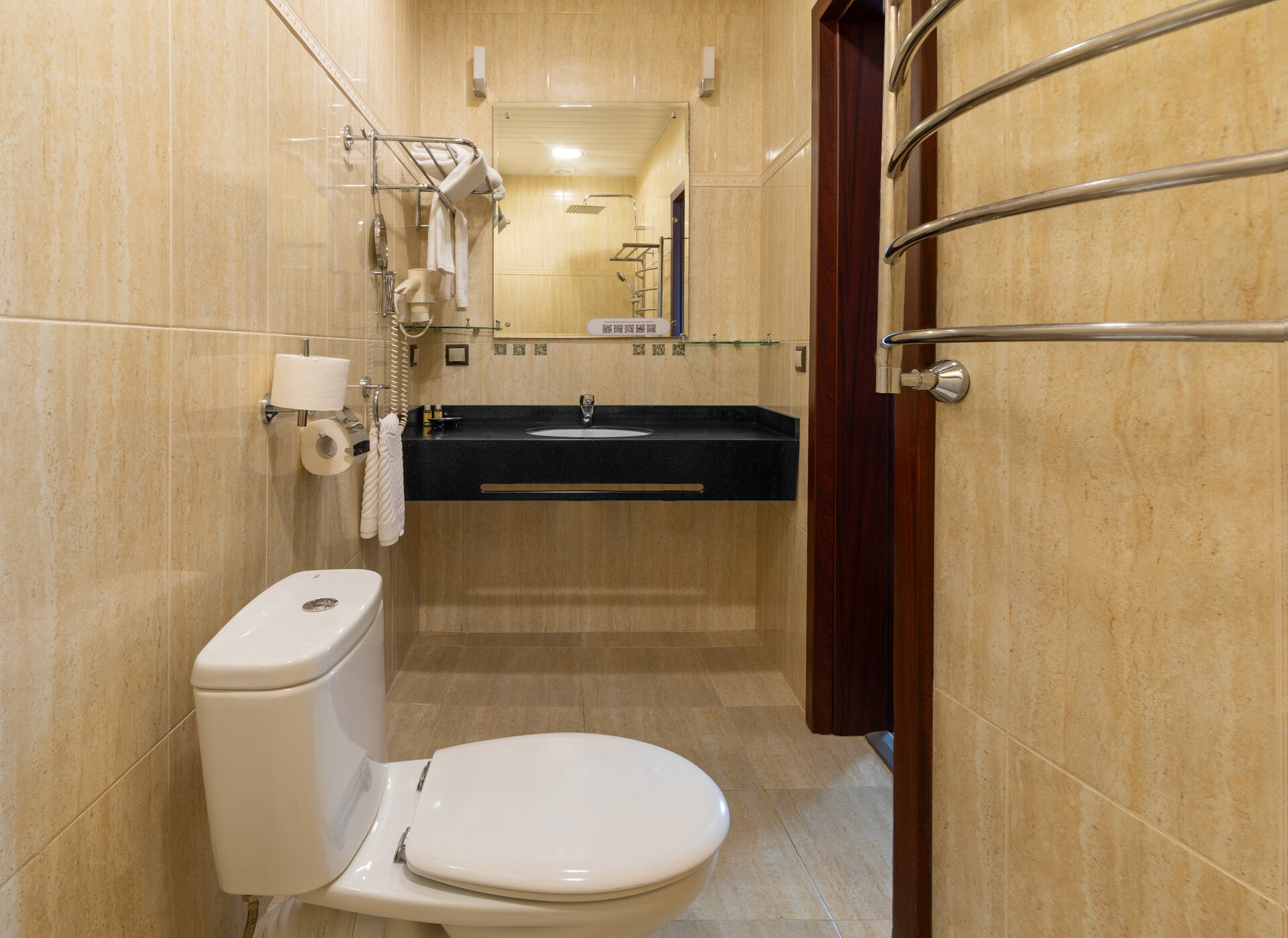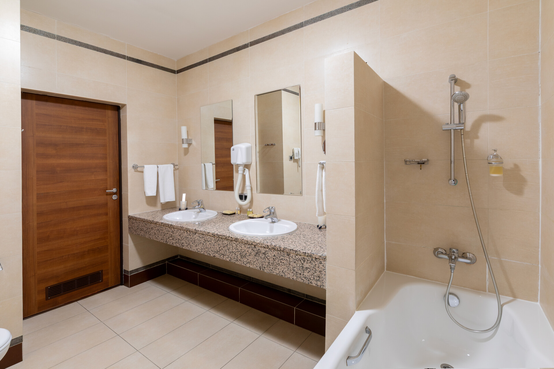 В номере: биде, ванна, туалет, умывальник / 2-спальная кровать, Wi-Fi, кондиционер, мини-холодильник, сейф, тв, телефон, фен