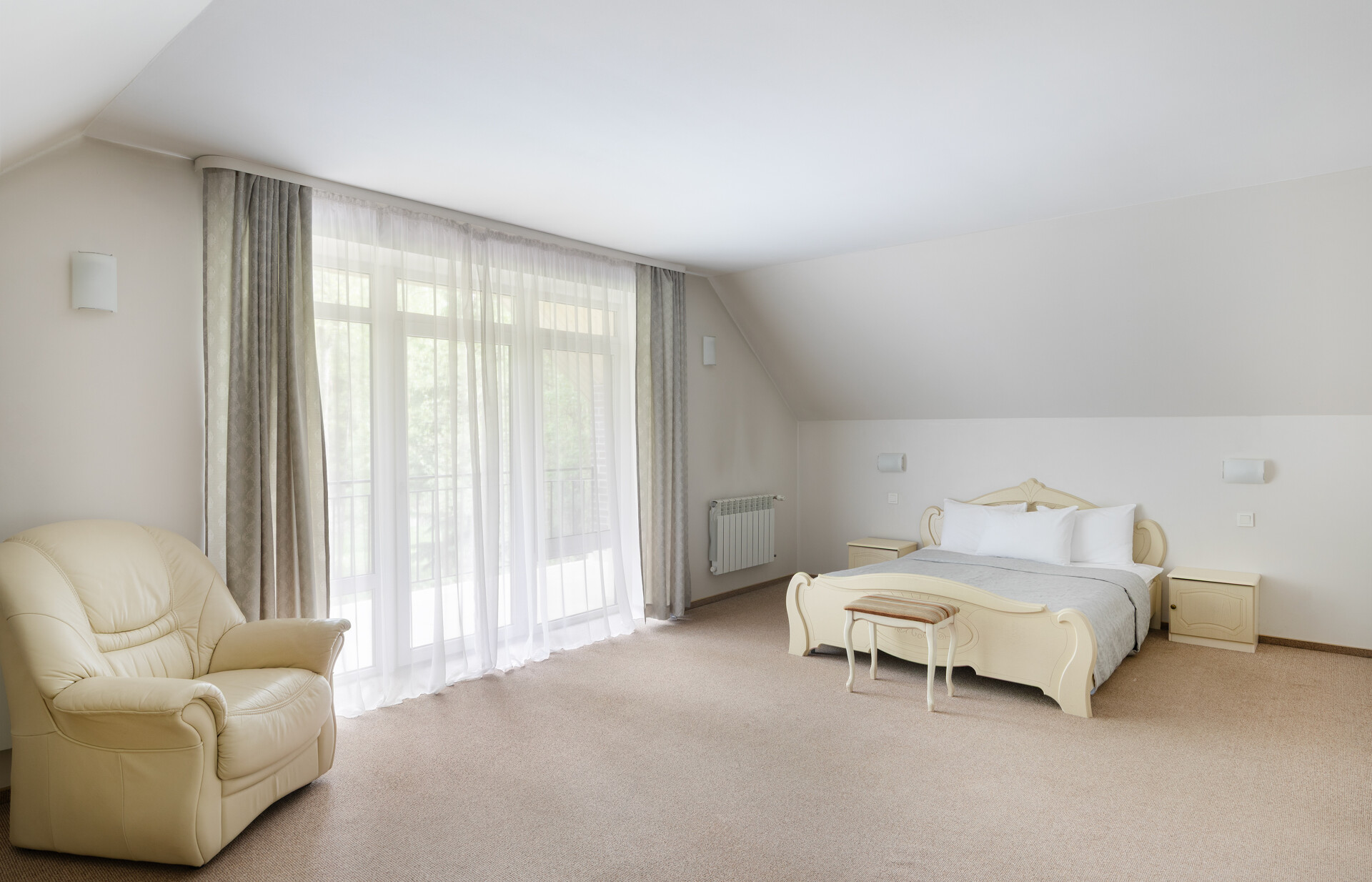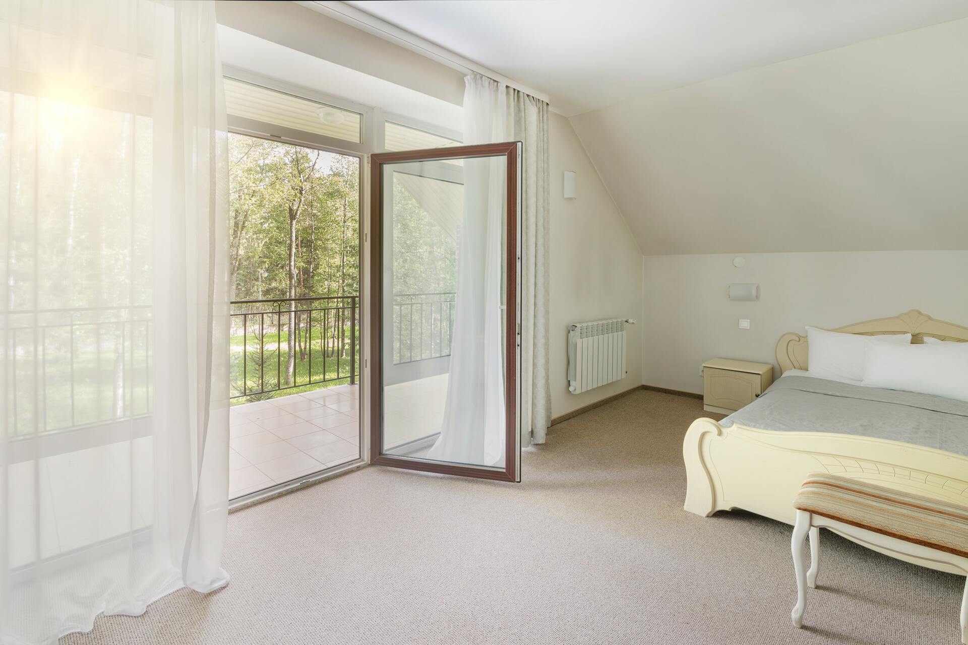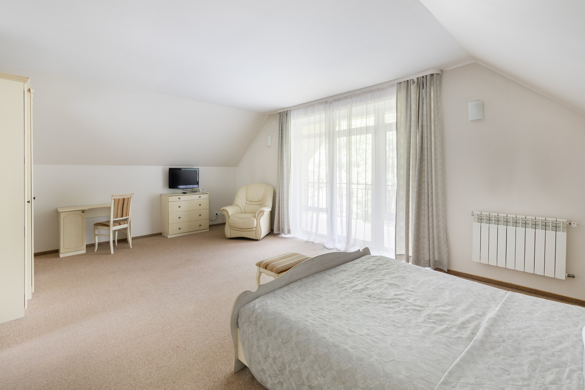Аккуратные и просторные номера европейского уровня, в которых действительно приятно находиться, доставят удовольствие от пребывания даже самым требовательным гостям. А те, кто предпочитает особый уровень комфорта и тишину, могут снять один из 12 просторных двухэтажных гостевых домиков с балконами, терассами и окнами "в пол". Вы только посмотрите фотографии!