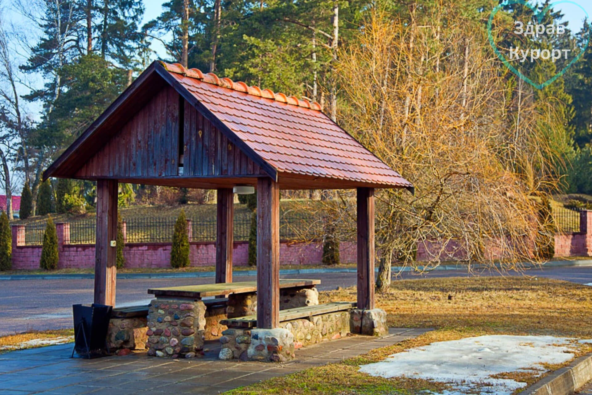 На территории санатория можно устроить барбекю-вечеринку, арендовав беседку с мангалом.